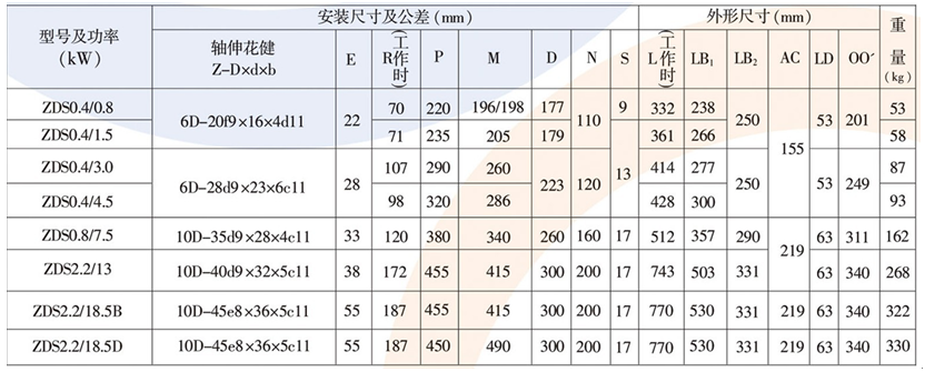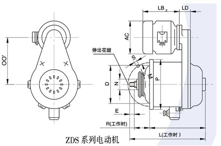 ZDS雙速子母電機是由兩臺錐形轉子三相異步電動機通過中間慢速驅動裝置聯接起來的一種復合電動機,其中大功率一臺為主機(母機),另一臺小功率為輔機(子機),具有快慢兩種速度,本系列電機為臥式電動機,機座不帶底腳,采用圓錐面制動器,可頻繁起動。本系列電機除與電動葫蘆配套外,還適用于起重運輸等機械。
